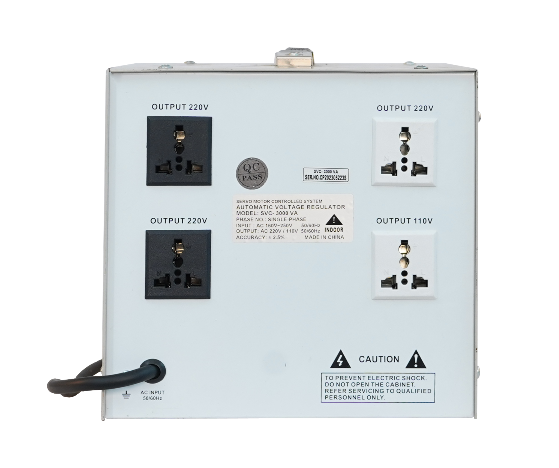 • Regulación Precisa: Utiliza tecnología de servomotor para ajustar con precisión el voltaje de salida, asegurando un suministro constante y estable.